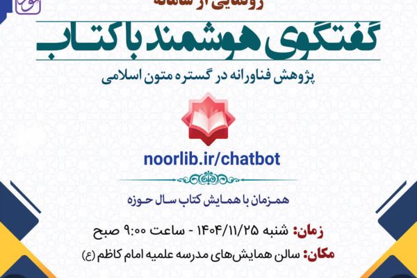 در همایش «کتاب سال حوزه»؛نسل جدید سامانه هوشمند «گفتوگو با کتاب» رونمایی شد 25 بهمن 1404پایش روز- با حضور رئیس جامعه مدرسین و مدیر حوزه های علمیه کشور از نسل جدید سامانه هوشمند « گفت وگو با کتاب» از محصولات مرکز تحقیقات کامپیوتری علوم اسلامی در همایش کتاب سال حوزه رونمایی شد.